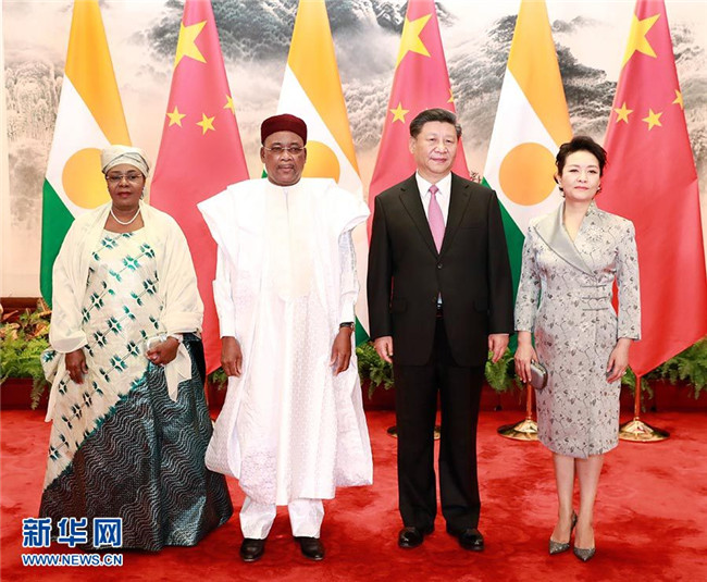 5月28日,國家主席習(xí)近平在北京人民大會(huì)堂同尼日爾總統(tǒng)伊素福舉行會(huì)談。這是習(xí)近平和夫人彭麗媛同伊素福夫婦合影。 新華社記者 龐興雷 攝