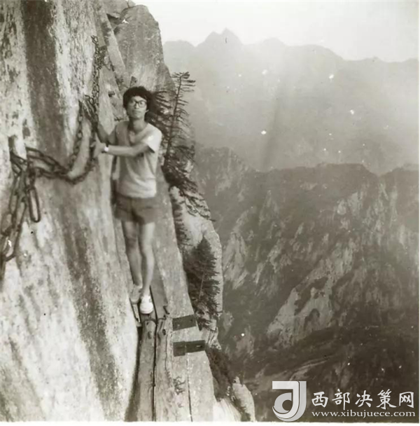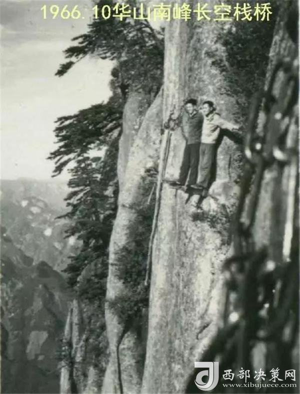 我照相的時(shí)候,一只手抓鐵鏈,一只手做動(dòng)作,身體是緊貼石壁。難得的是當(dāng)年一起去的一個(gè)女生給我照相,在我對(duì)面一樣危險(xiǎn),但女俠單手抓鐵鏈,整個(gè)身體外突懸在半空中,另一只手拿相機(jī)找一個(gè)最好角度給我拍照,我都替她擔(dān)心。——摘自網(wǎng)友2003年爬華山的游記
