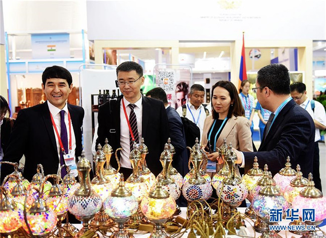 5月24日,在青島膠州方圓體育館,嘉賓在上海合作組織國際投資貿(mào)易博覽會上交流。新華社記者 李紫恒 攝