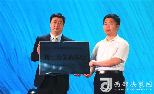 寶雞市人社局黨組專職副書(shū)記胡佑宏為陜西西鳳酒股份有限公司《陜西省博士后創(chuàng)新基地》授牌,陜西西鳳酒股份有限公司副董事長(zhǎng)、總經(jīng)理賈智勇接受授牌。