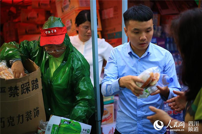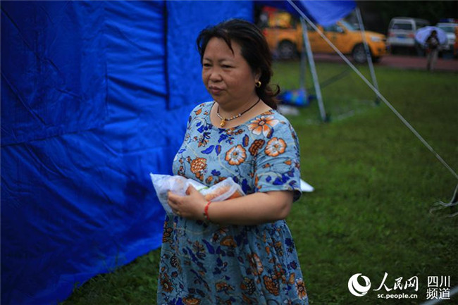 6月19日,宜賓長寧地震后的第二個清晨,安置點群眾領(lǐng)取了免費的早餐。(人民網(wǎng) 朱虹 攝)