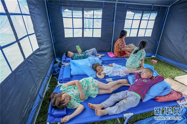 6月18日,在長寧縣雙河鎮(zhèn)雙河中學安置點,受災群眾在帳篷里休息。新華社發(fā)(劉昌松攝)