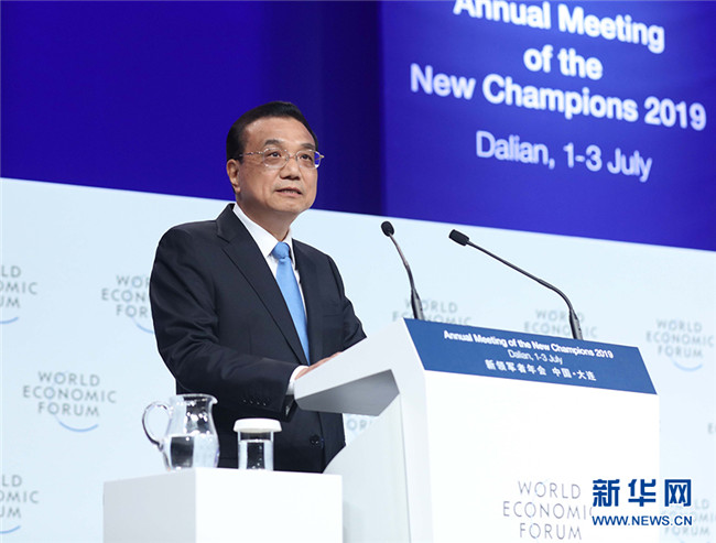 7月2日,國務院總理李克強在大連出席2019年夏季達沃斯論壇開幕式并發(fā)表特別致辭。 新華社記者 劉衛(wèi)兵 攝