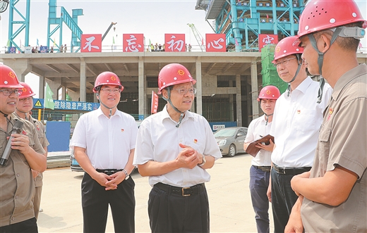 7月1日,自治區(qū)主席陳武深入防城港市,就金屬材料工業(yè)高質(zhì)量發(fā)展情況進(jìn)行調(diào)研。這是在柳鋼防城港鋼鐵基地項(xiàng)目施工現(xiàn)場(chǎng),陳武仔細(xì)詢問項(xiàng)目建設(shè)進(jìn)度和配套碼頭建設(shè)情況。 記者 黃 克/攝