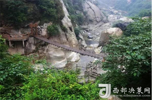 踏進(jìn)峪口,頭頂是遮天蔽日的綠色,四周水聲潺潺,鳥鳴悅耳,空谷幽靈,沉靜自然,涼爽的山風(fēng)夾雜著花草的芳香,瞬間就滋潤了燥熱的心情。迎著溪谷逆水而上,山的奇特與水的靈秀交織在一起,伴著水聲,綿延著向更遠(yuǎn)處伸展。若有情致,卷起褲腿,或穿上沙灘鞋,或赤足,踏著被溪水長久沖刷平整光滑的大石頭,任由清涼通透的溪水撫摸雙足,沁心入骨,仿佛拾回了童年的歡樂,煩擾憂愁全無蹤影。臨水而筑的棧道,全程依水而行,曲徑通幽,每轉(zhuǎn)一道彎,都是一幅新景。