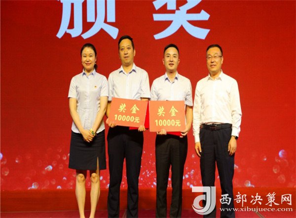 西鳳股份公司副董事長、總經(jīng)理賈智勇,西鳳集團(tuán)公司黨委副書記、紀(jì)委書記劉周虎為受表彰的先進(jìn)個人頒獎