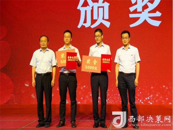 西鳳股份公司副總經(jīng)理、董事會秘書張周虎,西鳳集團(tuán)公司工會主席陳軍紅為受表彰的先進(jìn)個人頒獎
