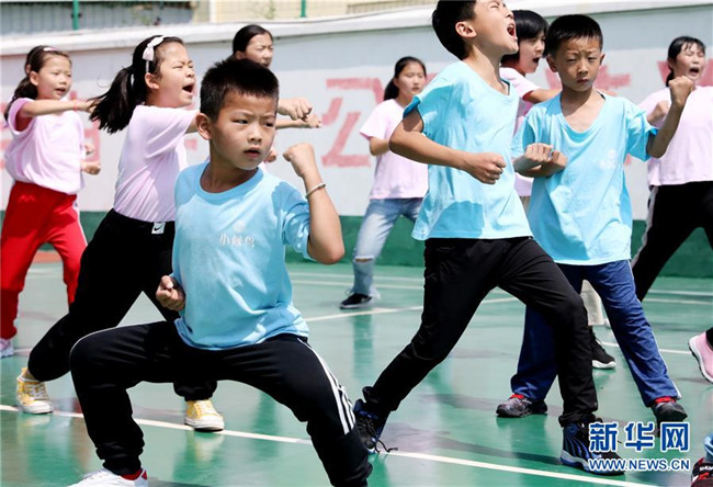 “小候鳥”們在武術(shù)課上訓(xùn)練(7月15日攝)。