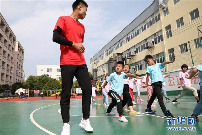 “小候鳥”們在武術(shù)課前做熱身運(yùn)動(7月15日攝)。