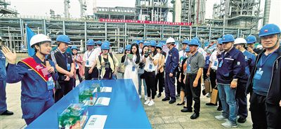 近日,中國石油呼和浩特石化公司工作人員為嘉賓展示用處理后的污水養(yǎng)魚。本報記者 李永桃 攝