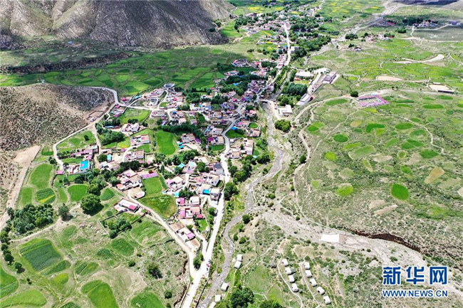 鳥瞰達東村景區(qū)(7月20日無人機拍攝)。西藏拉薩市柳梧鄉(xiāng)達東村是一個千年古村,也曾是一個貧困村。近年來,依托秀美的自然風(fēng)光、深厚的歷史文化和淳樸的風(fēng)土人情,當?shù)卣畬嵤┪幕糜萎a(chǎn)業(yè)精準扶貧,使達東村蛻變成為鄉(xiāng)村旅游勝地。新華社記者普布扎西攝