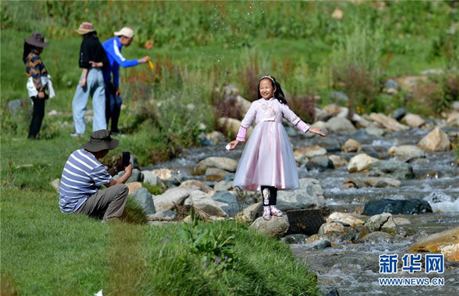 游人在達東村景區(qū)小溪邊玩耍(7月20日攝)。西藏拉薩市柳梧鄉(xiāng)達東村是一個千年古村,也曾是一個貧困村。近年來,依托秀美的自然風(fēng)光、深厚的歷史文化和淳樸的風(fēng)土人情,當?shù)卣畬嵤┪幕糜萎a(chǎn)業(yè)精準扶貧,使達東村蛻變成為鄉(xiāng)村旅游勝地。新華社記者張汝鋒攝