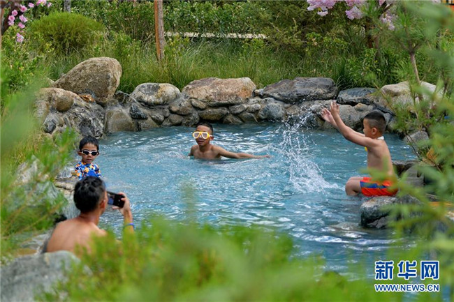 孩子們在達東村景區(qū)溫泉里嬉戲(7月20日攝)。西藏拉薩市柳梧鄉(xiāng)達東村是一個千年古村,也曾是一個貧困村。近年來,依托秀美的自然風(fēng)光、深厚的歷史文化和淳樸的風(fēng)土人情,當?shù)卣畬嵤┪幕糜萎a(chǎn)業(yè)精準扶貧,使達東村蛻變成為鄉(xiāng)村旅游勝地。新華社記者張汝鋒攝
