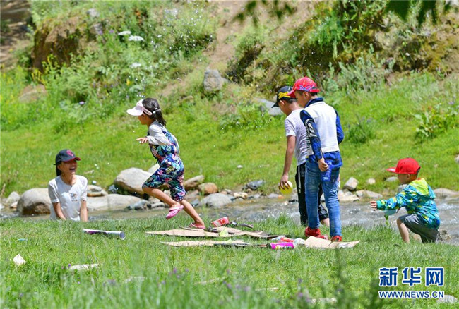 孩子們在達東村景區(qū)小溪邊玩耍(7月20日攝)。西藏拉薩市柳梧鄉(xiāng)達東村是一個千年古村,也曾是一個貧困村。近年來,依托秀美的自然風(fēng)光、深厚的歷史文化和淳樸的風(fēng)土人情,當?shù)卣畬嵤┪幕糜萎a(chǎn)業(yè)精準扶貧,使達東村蛻變成為鄉(xiāng)村旅游勝地。新華社記者張汝鋒攝