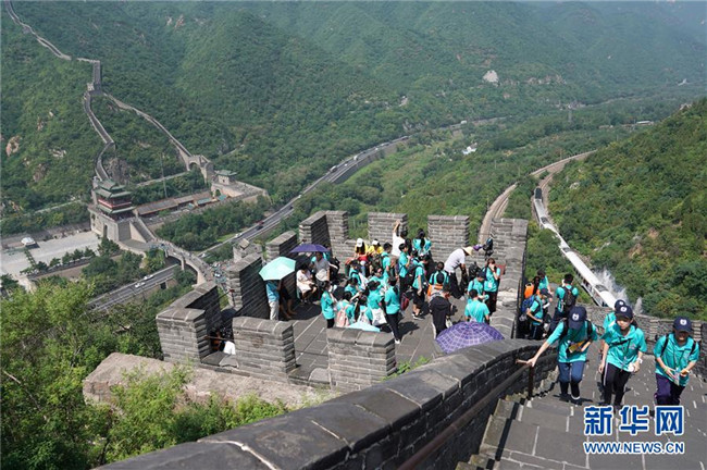 7月21日,參加“2019同心同根萬里行”活動的香港青少年在北京居庸關(guān)長城游覽。 新華社記者鞠煥宗攝