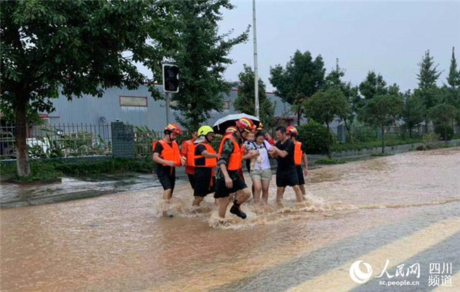 今日上午,四川省眉山市仁壽縣視高鎮(zhèn)遭遇強降雨,從凌晨4點左右開始大降雨,早晨8點左右積水嚴重。上午9點35分,視高專職消防隊接到報警稱在視高大道附近有5名群眾被困家中,其中1名1歲幼兒突發(fā)高燒,急需送往醫(yī)院救治。