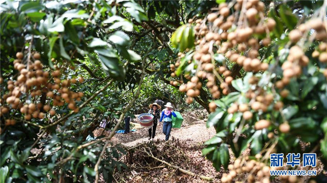 7月24日,欽州市欽南區(qū)麗光華僑農(nóng)場果農(nóng)在收獲龍眼。