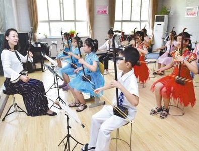 在河北省新樂(lè)市青少年活動(dòng)中心,孩子們參加二胡興趣班。影像中國(guó)