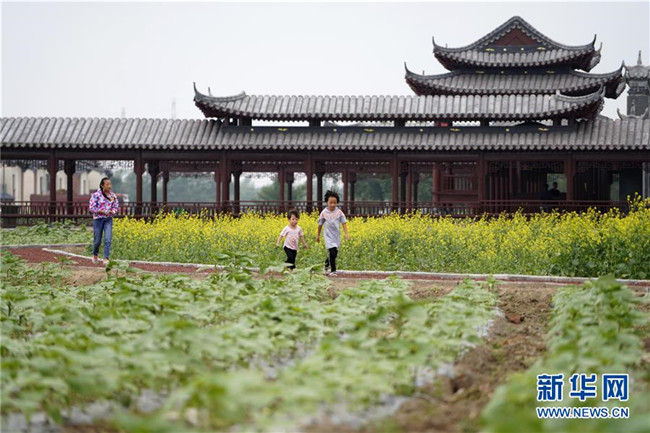 8月5日,小朋友們?cè)诤颖笔埍笨h德勝村玩耍。新華社記者 邢廣利 攝