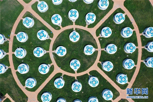 8月5日無(wú)人機(jī)拍攝的的河北省張北縣中都草原度假村的蒙古包。新華社記者 邢廣利 攝