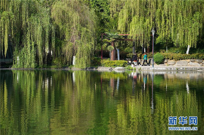 市民在安康市秦巴生態(tài)文化公園游玩(4月11日攝)。新華社記者 邵瑞 攝
