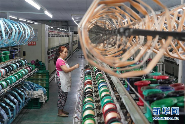 工人在安康市石泉縣陜西天成絲業(yè)有限公司生產(chǎn)車間內(nèi)工作(8月7日攝)。新華社記者 邵瑞 攝