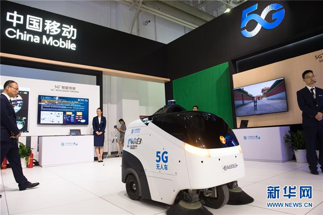 6月8日,在浙江寧波舉行的首屆中國(guó)-中東歐國(guó)家博覽會(huì)上,參展商在展示5G無人清掃車。新華社記者 翁忻旸 攝