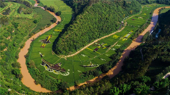 云南省昆明市宜良縣著力打造創(chuàng)意農(nóng)業(yè)、景觀農(nóng)業(yè)、實(shí)現(xiàn)“以農(nóng)帶旅、以旅興農(nóng)”的產(chǎn)業(yè)發(fā)展,其中種植的數(shù)百畝彩色稻田,在田間繪制了各類美麗畫卷,吸引眾多游客前來觀光。 新華社記者 秦晴 攝