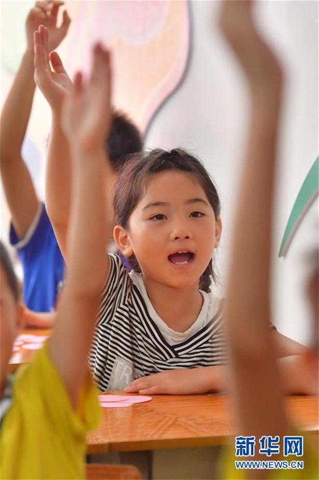 龔慧玲來自融安縣泗頂鎮(zhèn)農(nóng)村,今年隨家人搬進(jìn)安置小區(qū)。 暑假期間,廣西柳州市融安縣在易地扶貧搬遷安置小區(qū)“老鄉(xiāng)家園”開辦“七彩假期”公益培訓(xùn)班,授課老師除了輔導(dǎo)孩子功課外,還開設(shè)美術(shù)、舞蹈、音樂等興趣課程,豐富孩子們的假期生活。