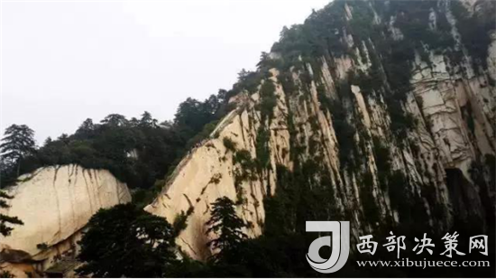 又因峰巔有巨石形狀好似蓮花瓣,古代文人多稱其為蓮花峰、芙蓉峰。西峰為一塊完整巨石,渾然天成。西北絕崖千丈,似刀削鋸截,其陡峭巍峨、陽剛挺拔之勢(shì)是華山山形之代表,因此古人常把華山叫蓮花山。西峰南崖有山脊與南峰相連,脊長300余米,石色蒼黛,形態(tài)好像一條屈縮的巨龍,人稱為屈嶺,也稱小蒼龍嶺,是華山著名的險(xiǎn)道之一。