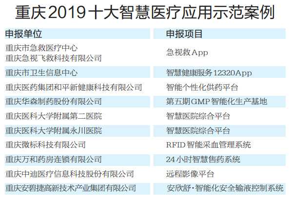 重慶2019十大智慧醫(yī)療應用示范案例發(fā)布