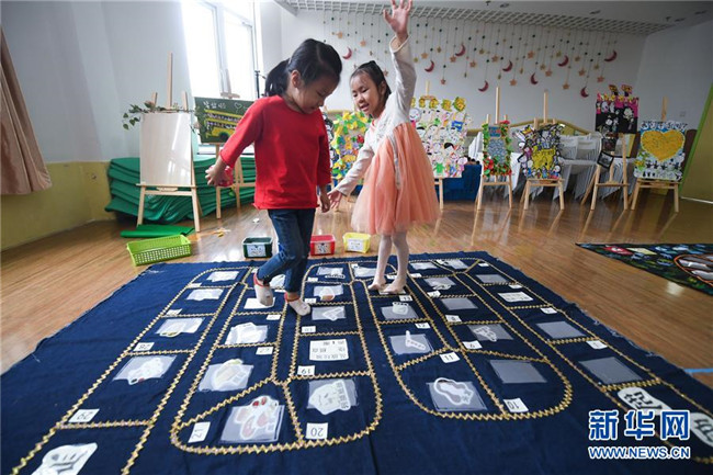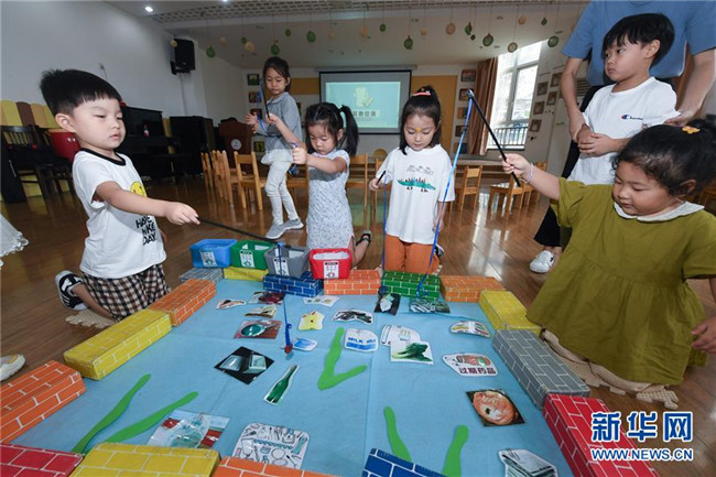 9月4日,孩子們通過趣味游戲學習垃圾分類的知識。