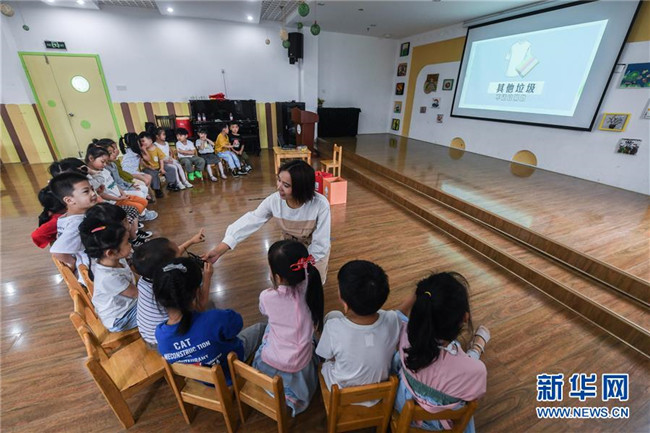 9月4日,老師給孩子們講解垃圾分類的知識。