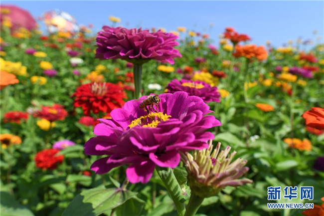 9月4日,長春市蓮花山生態(tài)旅游度假區(qū)花田里鮮花綻放。