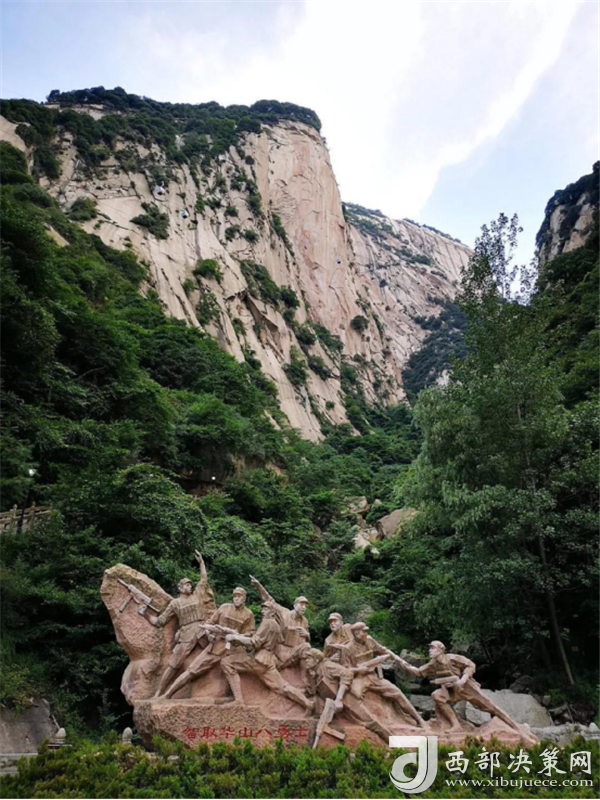 華山景區(qū)為了紀(jì)念這一歷史事件,在華山北峰的東面開(kāi)劈了一條“智取華山路”,路口豎立了“智取華山八勇士雕像”,至此,游客來(lái)華山又多了一條上山之徑。