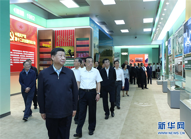 9月23日,黨和國(guó)家領(lǐng)導(dǎo)人習(xí)近平、李克強(qiáng)、汪洋、王滬寧、趙樂(lè)際、韓正、王岐山等在北京展覽館參觀(guān)“偉大歷程 輝煌成就——慶祝中華人民共和國(guó)成立70周年大型成就展”。新華社記者 鞠鵬 攝