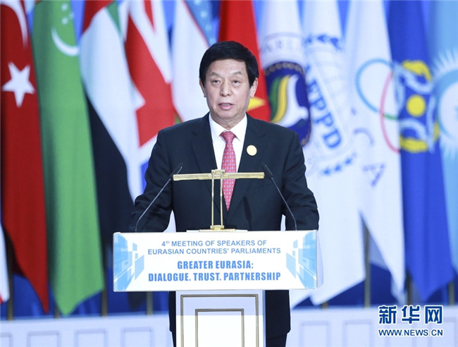 第四屆歐亞國家議長會(huì)議24日在哈薩克斯坦首都努爾蘇丹舉行。全國人大常委會(huì)委員長栗戰(zhàn)書出席會(huì)議開幕式并作主旨發(fā)言。