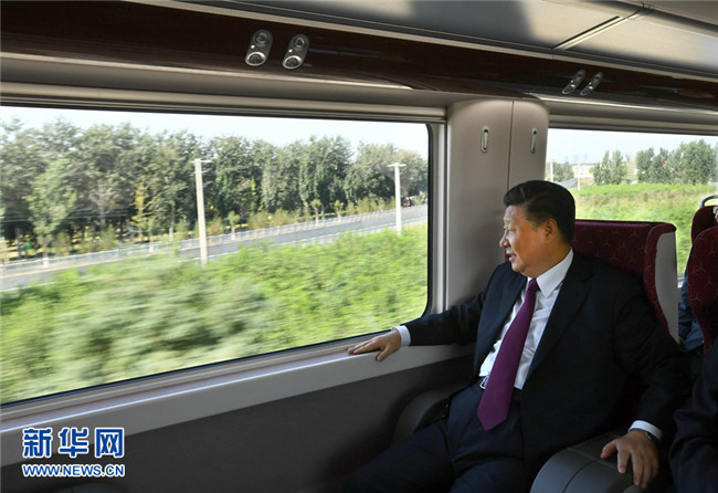 9月25日上午,北京大興國(guó)際機(jī)場(chǎng)投運(yùn)儀式在北京舉行。中共中央總書(shū)記、國(guó)家主席、中央軍委主席習(xí)近平出席儀式,宣布機(jī)場(chǎng)正式投運(yùn)并巡覽航站樓。這是習(xí)近平乘坐軌道列車(chē)前往北京大興國(guó)際機(jī)場(chǎng)。 新華社記者 謝環(huán)馳 攝