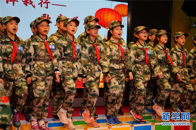 當日,北京市建華實驗學校小學部舉行“意志伴我行——歌聲嘹亮”紅色歌曲大合唱活動。師生們在歌聲中接受了一場愛國主義教育。 新華社記者 吳建路 攝