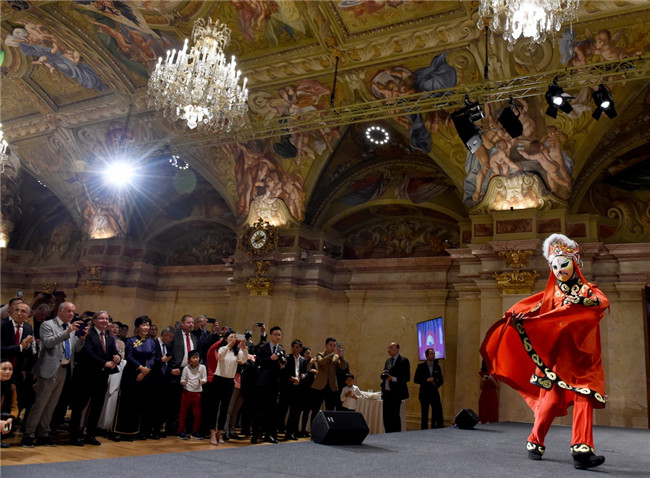 9日晚,“文化中國(guó)、錦繡四川”四川文化旅游展示會(huì)在奧地利首都維也納舉辦。本次活動(dòng)通過圖片展、傳統(tǒng)文藝表演以及川菜美食推介等形式,向當(dāng)?shù)鼐用窈秃M馊A人展示川蜀文化,展現(xiàn)中國(guó)魅力,受到了一致好評(píng)。新華社記者郭晨攝