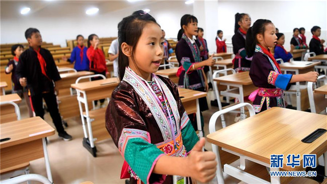 這是廣西三江侗族自治縣江川小學學生在學唱侗戲(10月14日攝)。 新華社記者張愛林攝