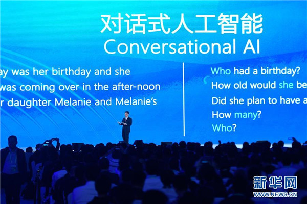 10月20日,微軟公司代表在介紹“統一自然語言預訓練模型與機器閱讀理解”。 新華社記者 黃宗治 攝