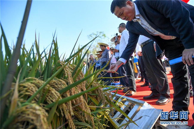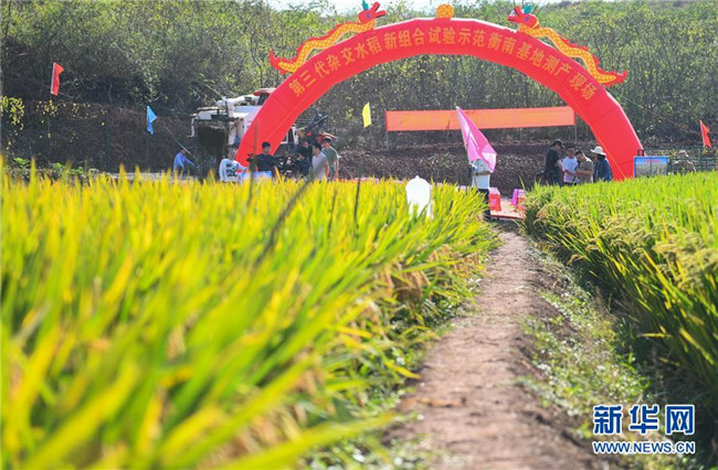 這是第三代雜交水稻新組合試驗(yàn)示范衡南基地測(cè)產(chǎn)現(xiàn)場(chǎng)(10月21日攝)。 新華社記者 陳澤國 攝