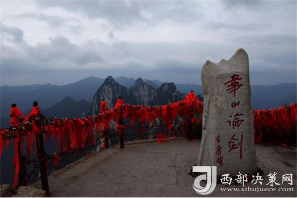 說到北峰,不可不提的自然是華山論劍了,在峰頂有一塊石牌,上面是金庸先生親筆題寫的“華山論劍”,此處也成為游客登臨華山必到之處。