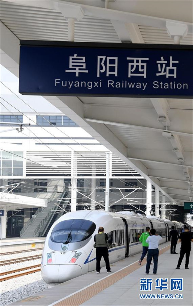 10月24日,一輛試運行列車停靠在商合杭高鐵阜陽西站。  新華社記者劉軍喜攝