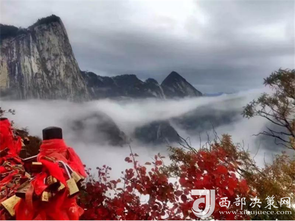 金鎖關(guān)是建在三峰口的一座城樓般石拱門,是經(jīng)五云峰通往東、西、南、中四峰的咽喉要道,鎖關(guān)后則無路可通,所以又稱為通天門。關(guān)內(nèi)關(guān)外登山路兩側(cè)鐵索上掛滿的情侶鎖、平安鎖重重疊疊,紅繩彩線迎風(fēng)搖曳,也是關(guān)前一道美麗的風(fēng)景。