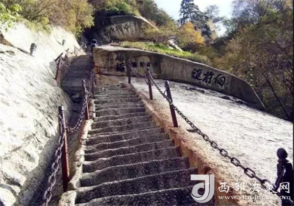 長(zhǎng)空棧道位于華山南峰東側(cè)山腰,是華山派第一代宗師元代高道賀志真為遠(yuǎn)離塵世靜修成仙,在萬仞絕壁上鑲嵌石釘搭木椽而筑。長(zhǎng)空棧道的盡頭便是思過崖。