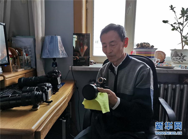 11月18日,邱祥林在家中擦拭相機(jī)。新華社記者 王建 攝