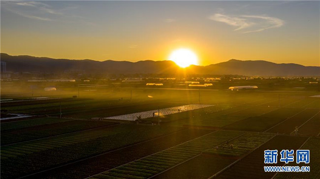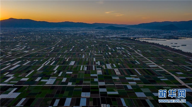 這是云南省玉溪市通??h的田園風(fēng)光(11月23日無(wú)人機(jī)拍攝)。初冬時(shí)節(jié),云南省玉溪市通海縣風(fēng)景秀麗,山巒、湖水與農(nóng)田組成了一幅美麗的田園詩(shī)畫卷。新華社記者胡超攝