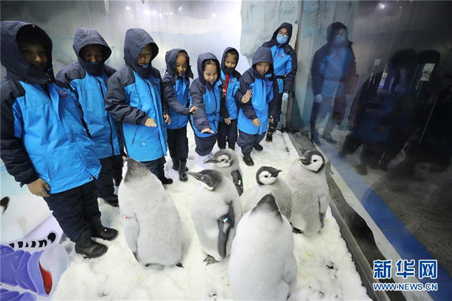 廣東珠海:小學(xué)生零距離接觸帝企鵝